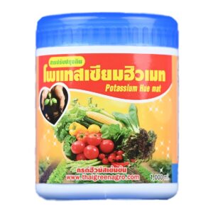 โดยโพแทสเซียมฮิวเมทตัวนี้จะประกอบไปด้วยสารสกัดเข้มข้นจากฮิวมัส ที่มีคุณสมบัติเด่นคือการช่วยปรับสภาพดินเหนียวหรือดินแน่นแข็งให้มีร่วนซุย ระบายน้ำและอากาศได้ดียิ่งขึ้น ช่วยเพิ่มอินทรียวัตถุในดิน ช่วยให้รากพืชแผ่กระจายได้กว้างและลึกขึ้น ทำให้ดูดซึมปุ๋ยได้ดียิ่งขึ้นและเมื่อโพแทสเซียมฮิวเมทมีการสลายตัวจะมีการปล่อยไนโตรเจน กำมะถัน และ ธาตุเสริมออกมาเป็นประโยชน์ต่อพืชอย่างช้าๆ และ ตัวอินดิวเซอร์ที่เป็นเชื้อไตรโคเดอร์มาซึ่งเป็นเชื้อราที่ทำหน้าที่ในการป้องกันและกำจัดโรคทางดินไม่ว่าจะเป็นโรครากเน่าโคนเน่า โรคเน่าคอดิน โรคไฟธอปเทอร่า โรคเน่าคอดิน รวมไปถึงโรคฟิวซาเลียม
